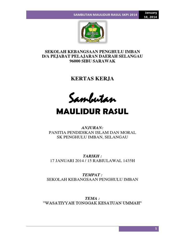 KERTAS KERJA SAMBUTAN MAULIDUR RASUL 20211443H PERINGKAT SK SERI MAKMUR-----PENDAHULUAN Kelahiran Nabi Muhammad SAW telah membawa perubahan yang besar dalam kehidupan seluruh masyarakat manusia di dunia dari kejahilan kepada kebenaran sebagaimana firman Allah SWT yang bermaksud. 1200 100 tengahari Tempat. KERTAS KERJA sempena SAMBUTAN Maulidur rasul SJK C JELAPANG 2014 2.